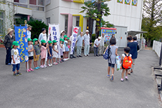 毎月、地域の保育園で、子ども達と挨拶運動をしています。
