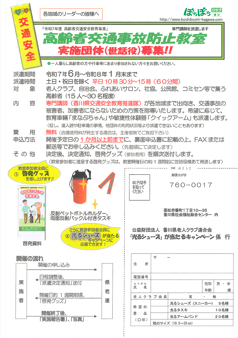 令和7年度も引き続き高齢者交通安全事業を開催していますので大切な尊い命を守るためにぜひ下記講習を開催してください。
